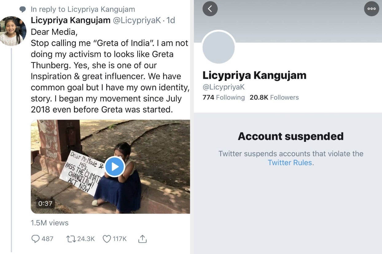 Licypriya Kangujam's Twitter account was suspended for 10 hours sparking fury online.